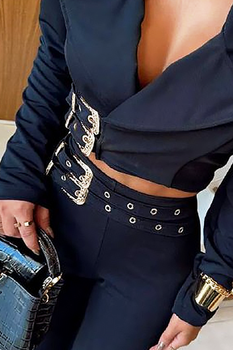 • Pantalone imaju visok struk, seksi ravan kroj i detalje oko struka.