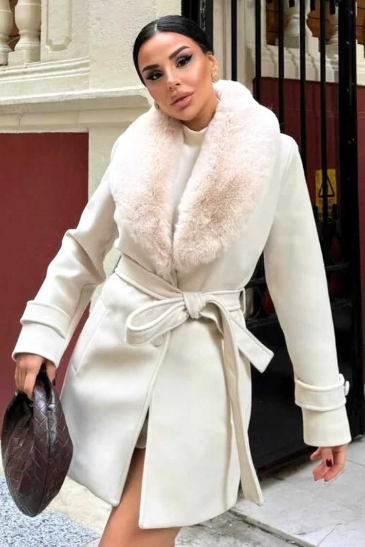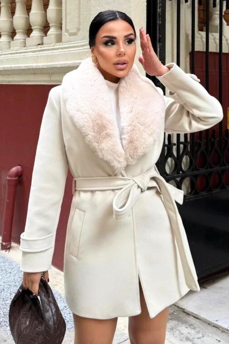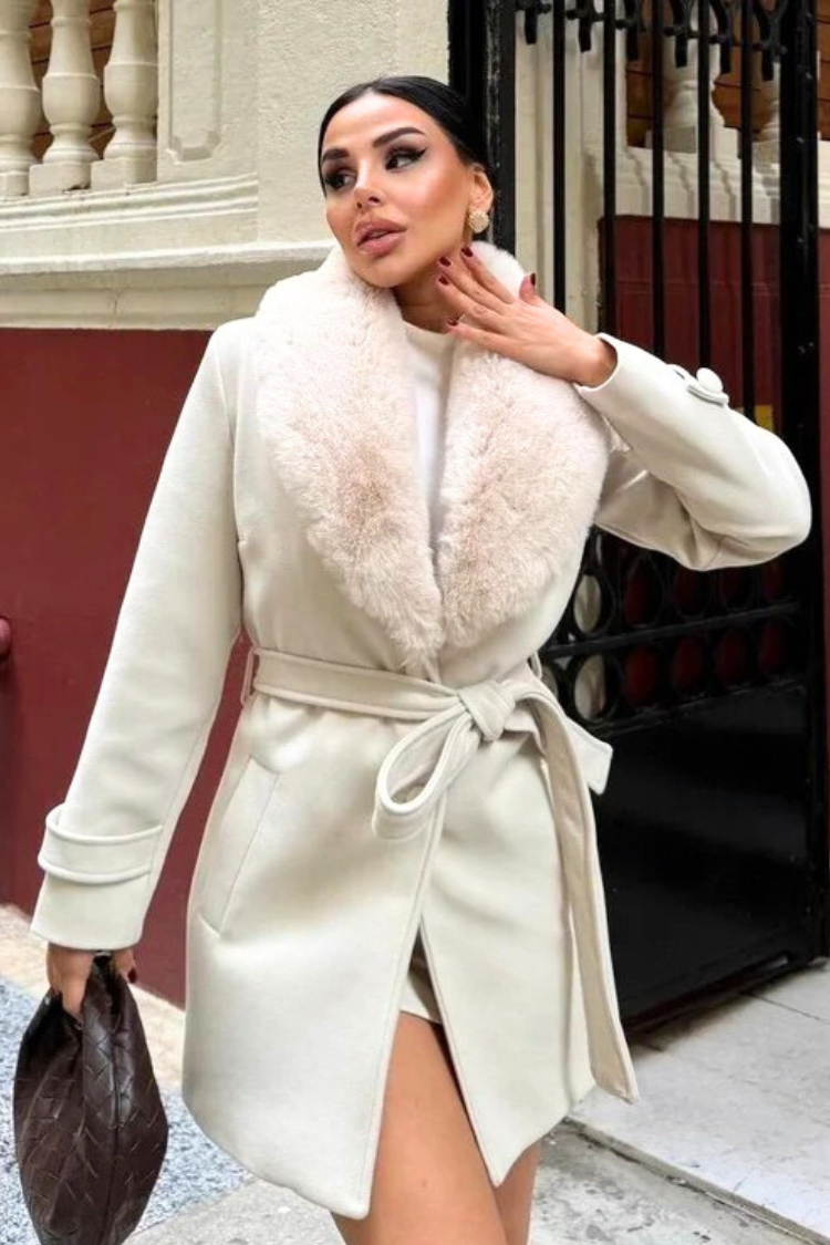 - Model ima klasičan kroj, krznenu kragnu koja se može skinuti i kaiš od iste tkanine.