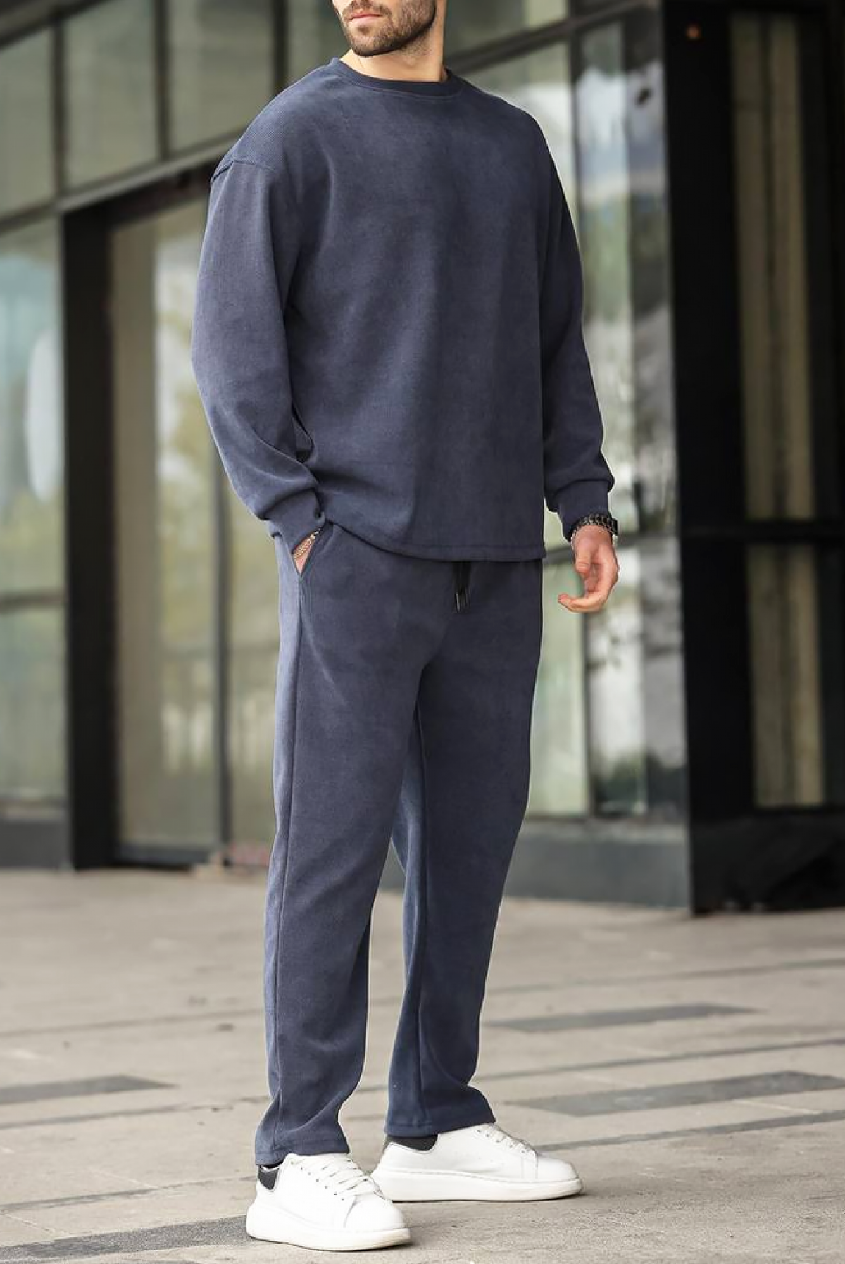 - Udoban muški dvodelni komplet u trendi boji, koji se sastoji od dukserice i pantalona.