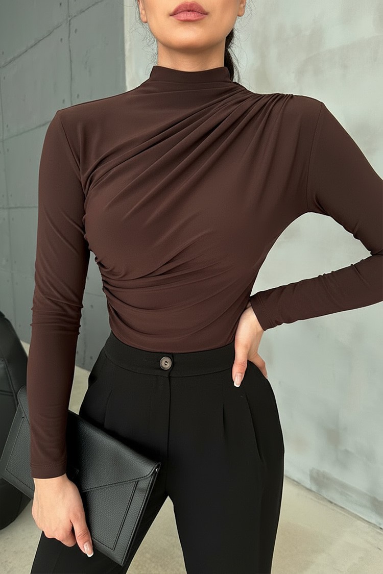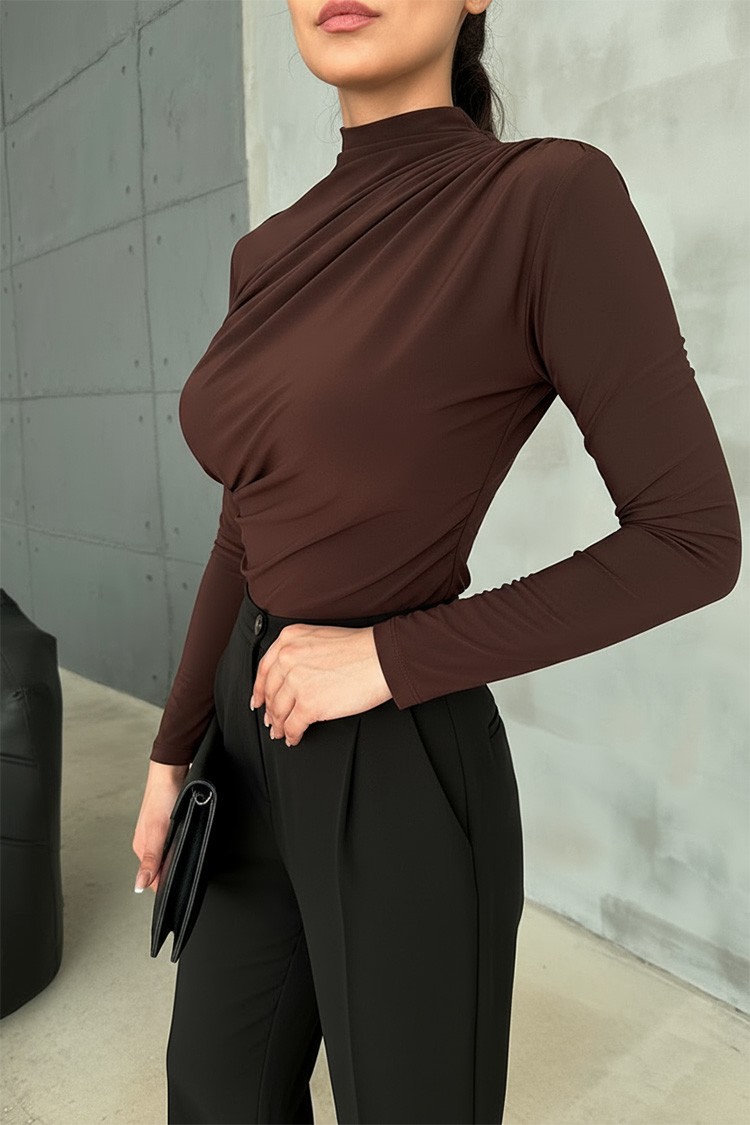 - Bluza ima duge rukave, efektan kroj i elegantnu polo majicu.