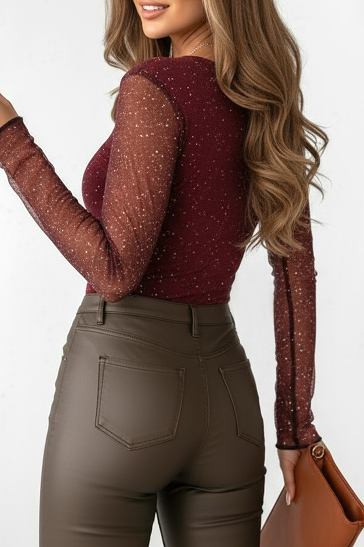 - Bluza ima duge rukave od tila i sjajne detalje koji je čine još atraktivnijom.