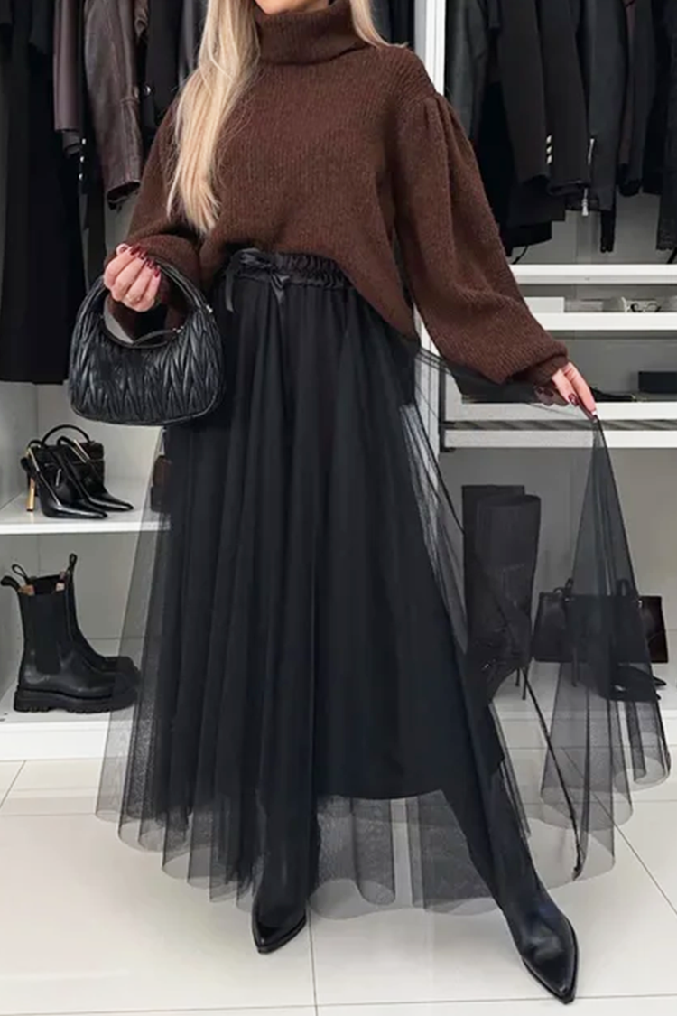- Model ima midi dužinu i visok, elastični struk sa vezicama.
