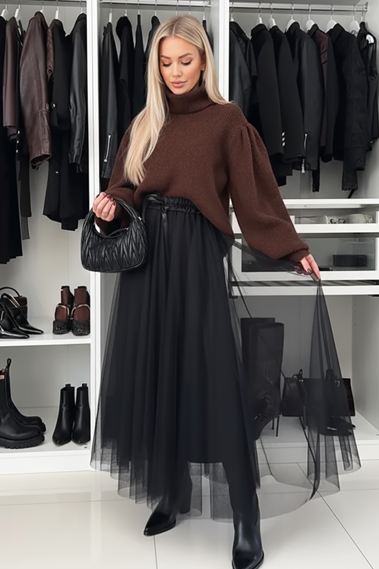 - Preporučujemo kombinovanje sa bluzom širokog kroja i čizmama sa visokim potpeticama.