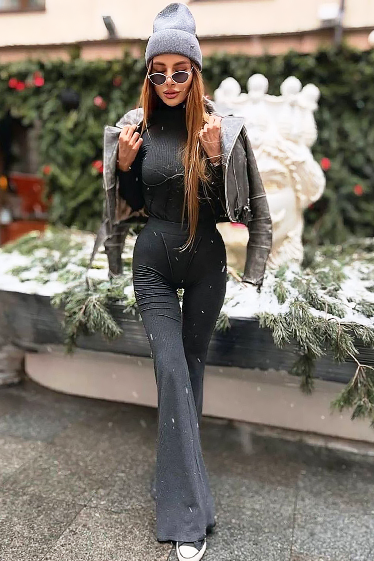 - Model ima bodi - bluzu sa uskim krojem i dugim rukavima, a helanke imaju visok i elastičan struk.