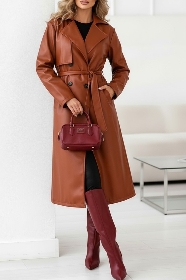 • Upotpunite svoju modernu odeću mantilom sa dvostrukim kopčanjem i jednobojnim dezenom, pogodnom za razne modne kombinacije.