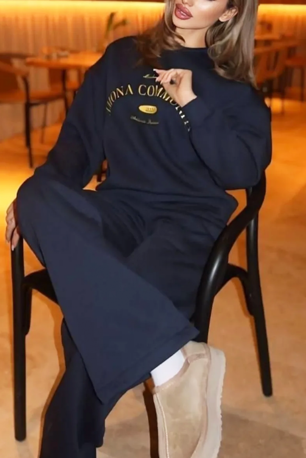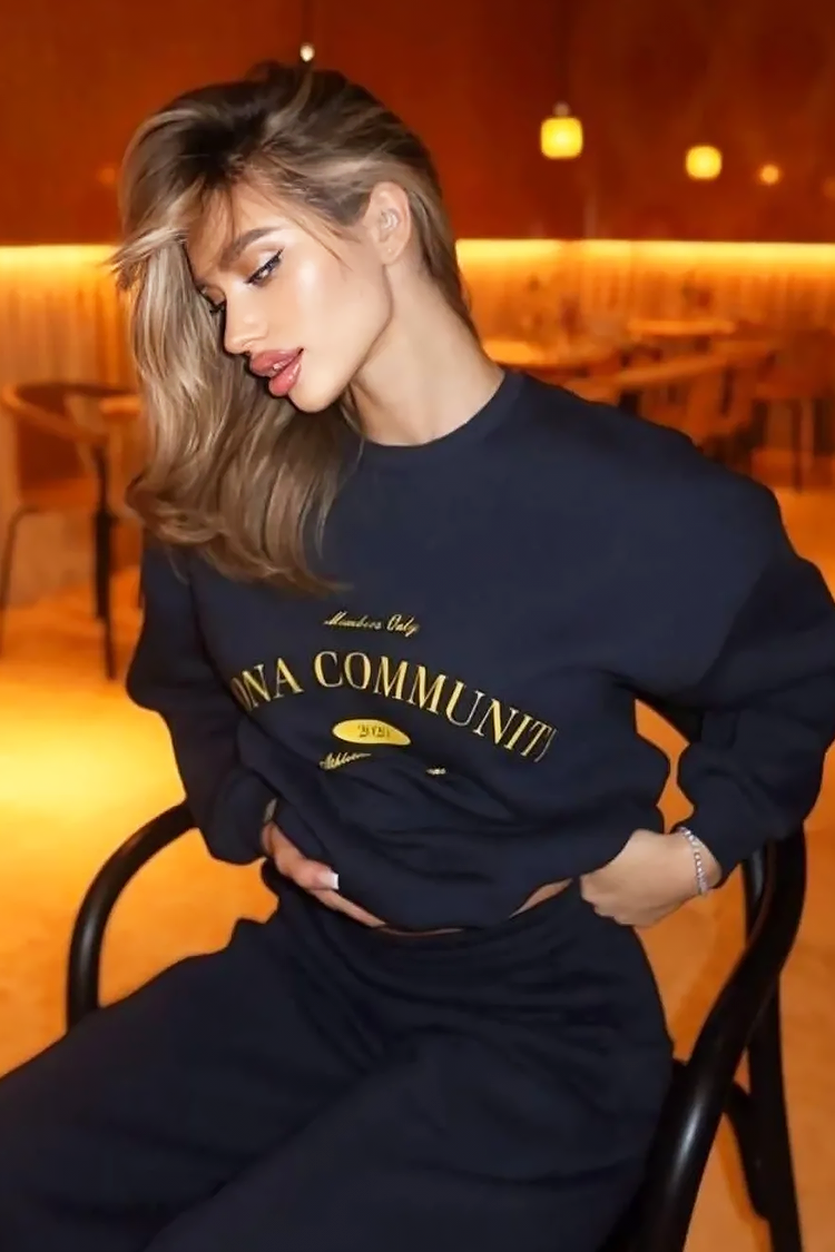 - Gornji deo je bluza slobodnog i klasičnog kroja sa trendi natpisom.