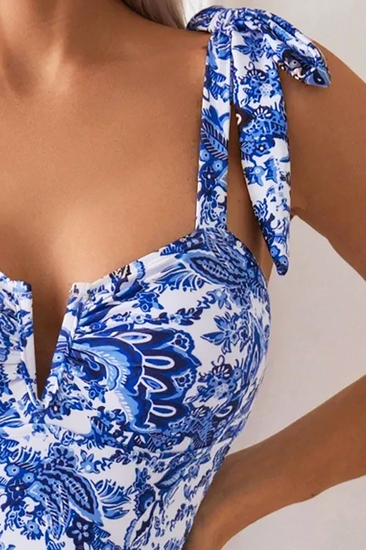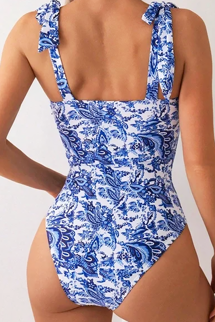 - Jednodelni kupaći kostim u dvobojnom dezenu, pogodan za odmor na plaži i u spa centru.