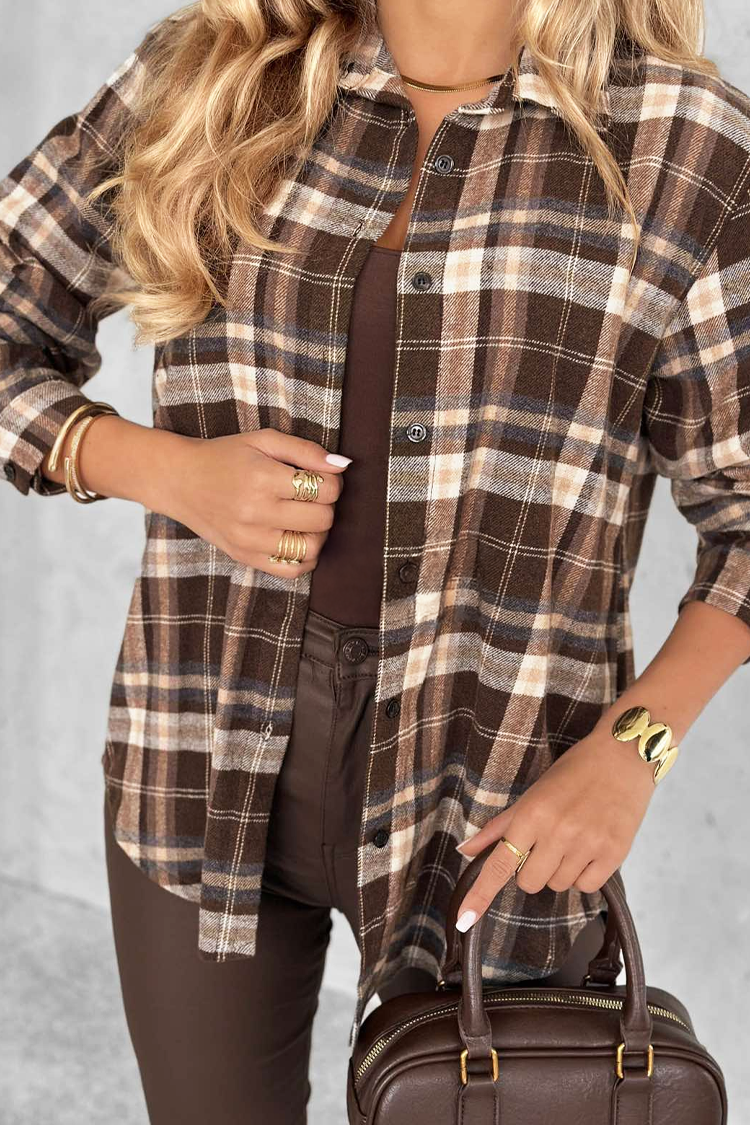 - Model ima karirani dizajn, standardno zakopčavanje na dugmad i oversize dizajn.