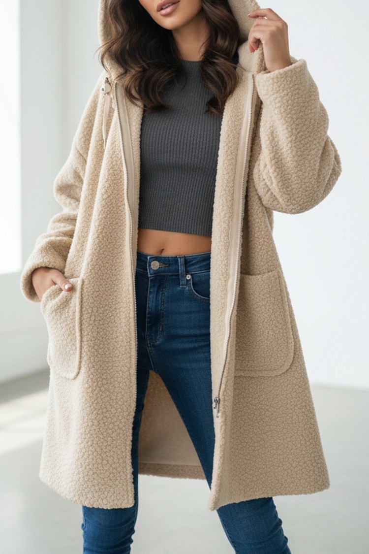 - Model ima udoban kroj, kapuljaču, praktične velike džepove i zakopčava se rajsferšlusom.