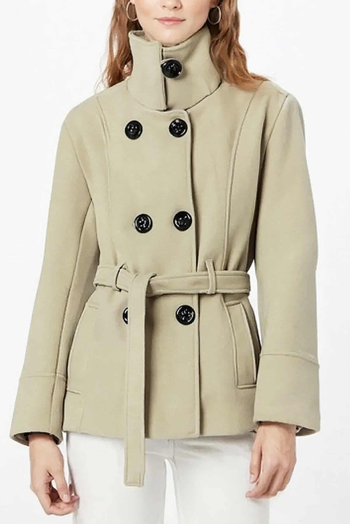 - Model ima stilsku kragnu, efektno zakopčavanje na dugmad i kaiš od iste tkanine.