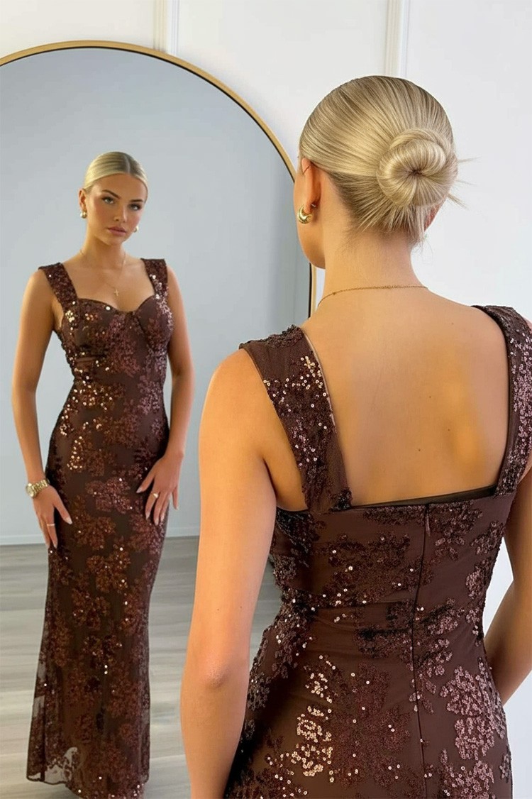 • Model ima debele bretele, uski kroj i finu tkaninu sa sjajnim šljokicama.