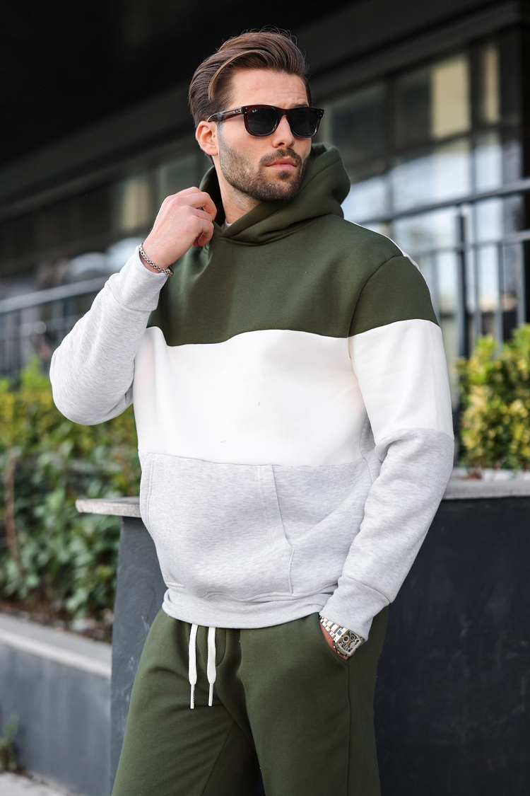 - Dukserica ima kapuljaču i veliki džep. Pantalone imaju širok kroj i elastične nogavice.