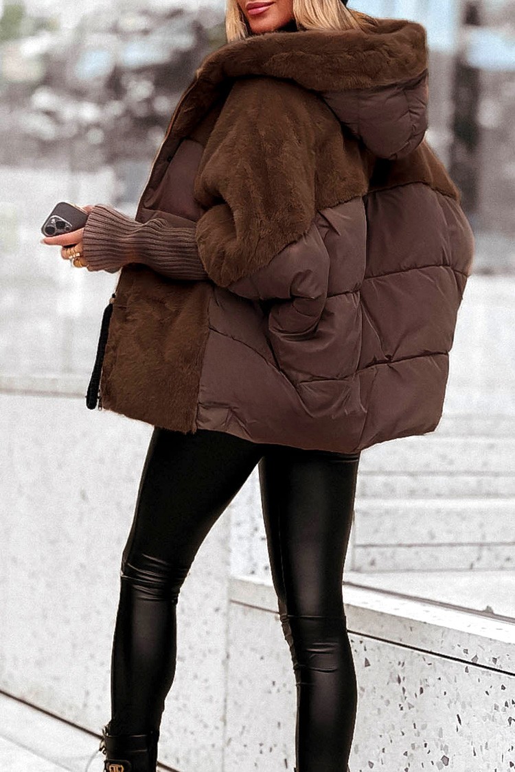- Model ima udoban kroj, zakopčavanje na dugmad, voluminoznu kapuljaču i punu dužinu jakne.