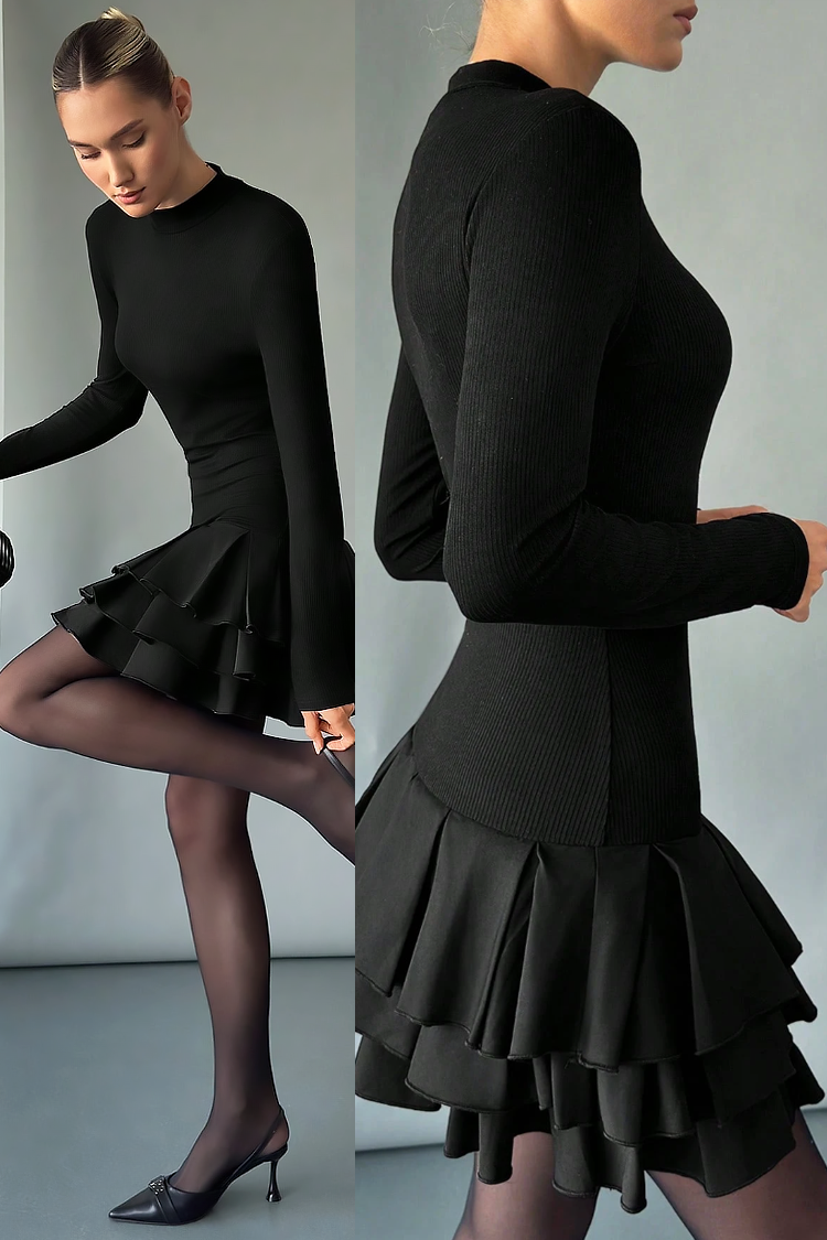 - Za moderan izgled, izaberite ovu kratku haljinu sa jednobojnim dezenom.