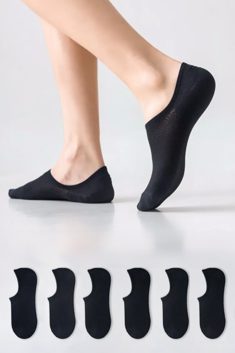 - Komplet od šest klasičnih crnih čarapa bez navlačenja izrađenih od elastične tkanine.