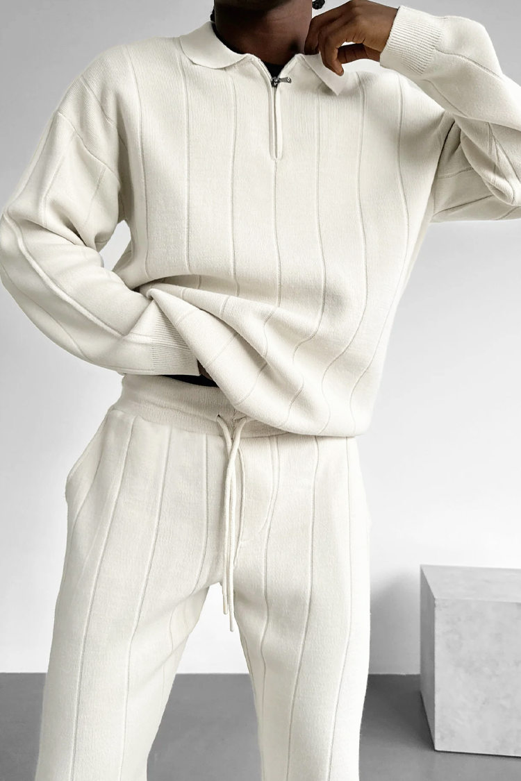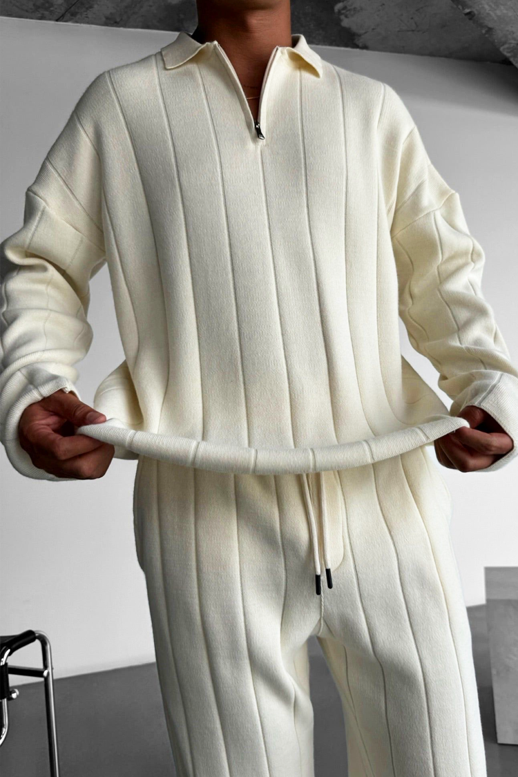 - Udoban muški dvodelni komplet koji se sastoji od bluze i pantalona.