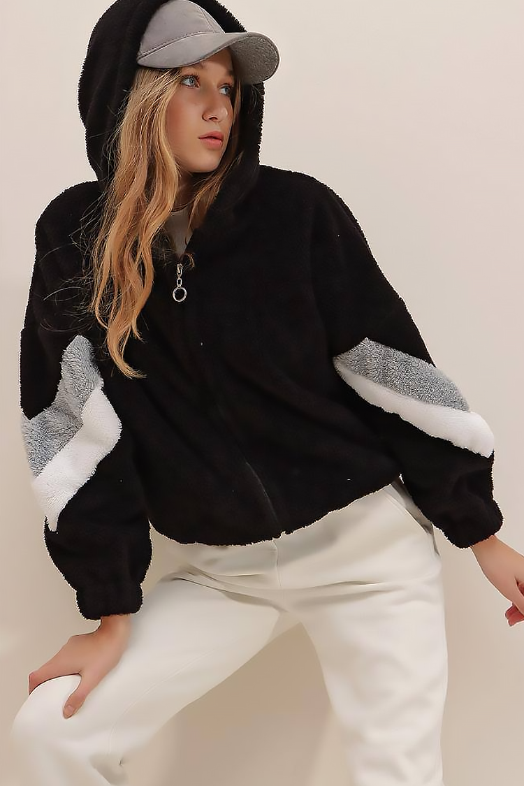 - Moderna ženska perjana dukserica sa rajsferšlusom u klasičnim bojama, pogodna za vašu modernu svakodnevicu.