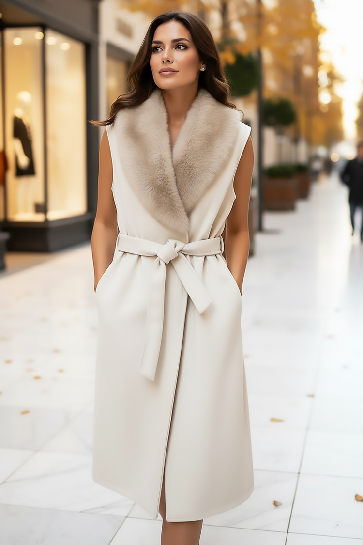 - Moderni ženski perjani prsluk u klasičnoj boji, pogodan za vašu modernu svakodnevicu.