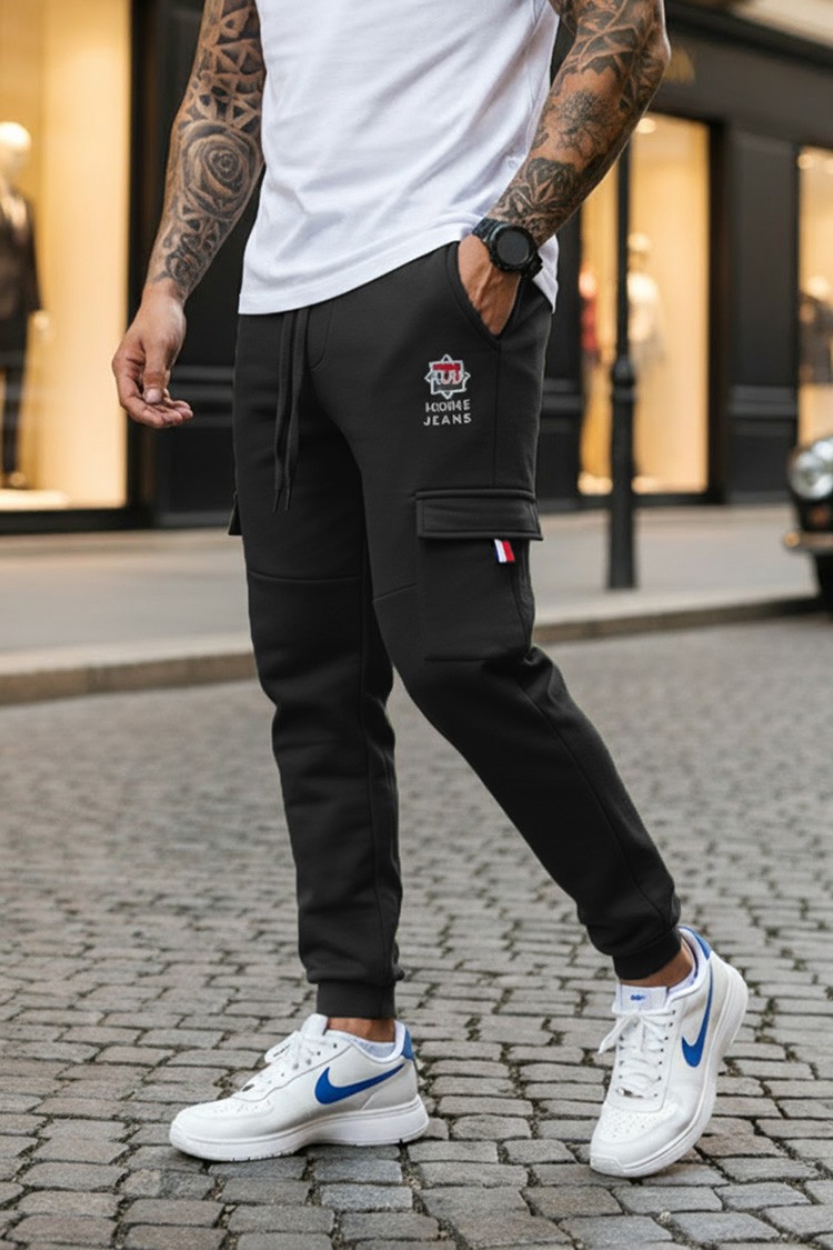 - Muške pantalone klasične boje, pogodne za svakodnevni život ili sport.