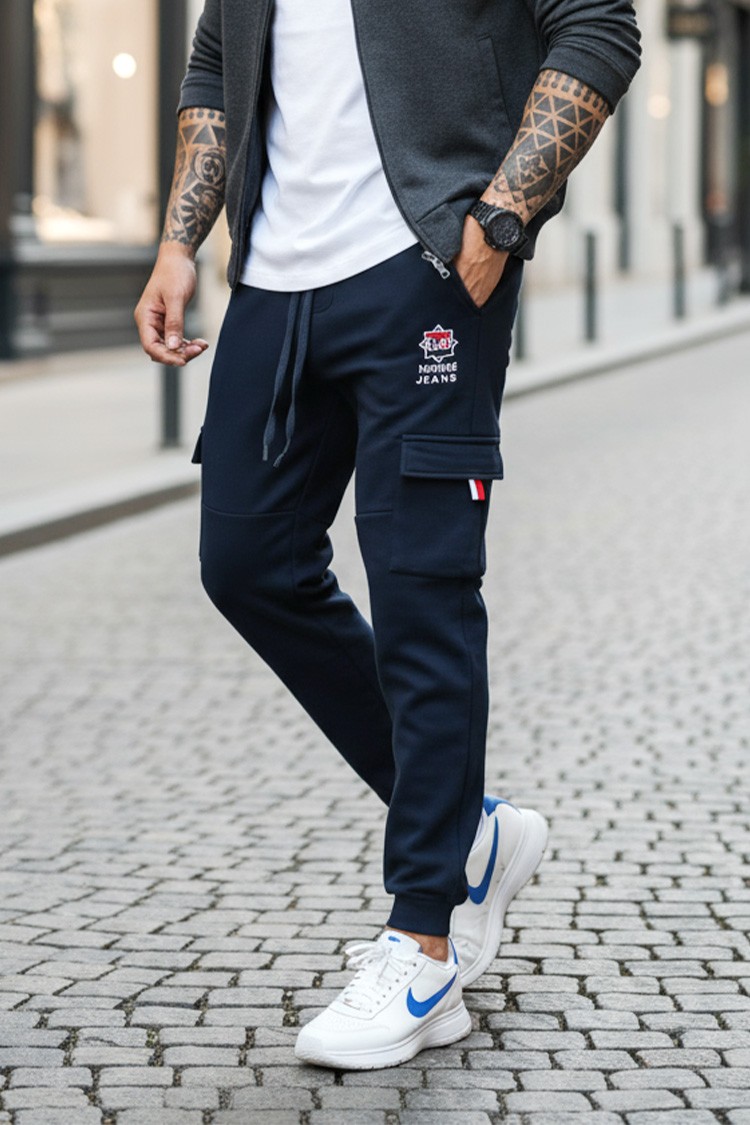 - Muške pantalone klasične boje, pogodne za svakodnevni život ili sport.