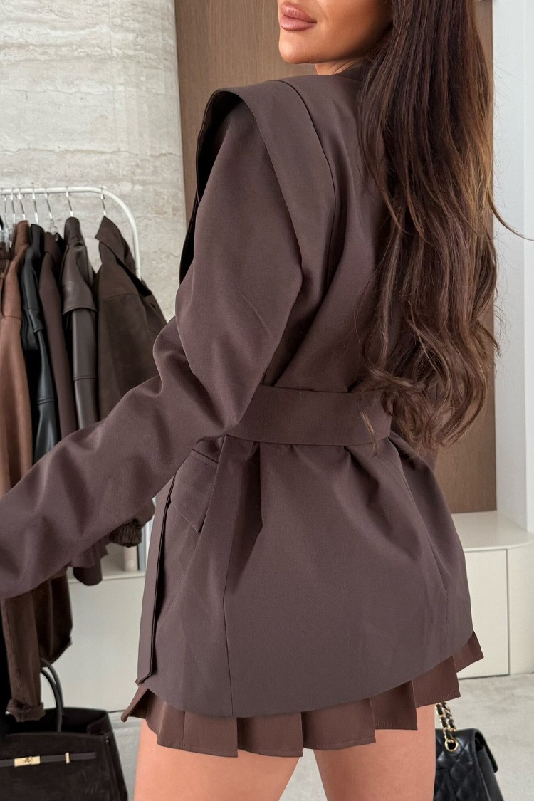 - Kombinujte stil sa udobnošću! Model ima udoban kroj, stilsku kragnu i kaiš od iste tkanine.