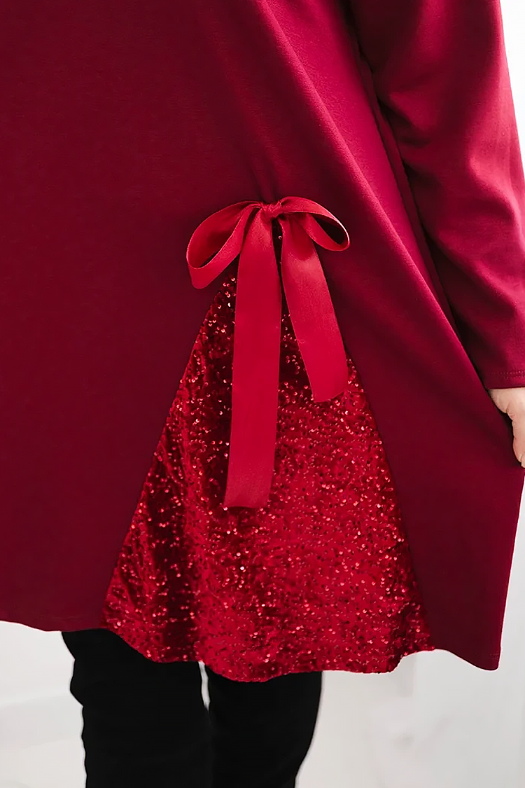 - Model ima slobodan, elastičan kroj i šljokice na donjem delu.