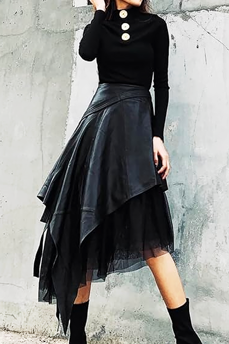 • Stilska i nežna midi suknja od eko kože, pogodna za razne modne prilike.