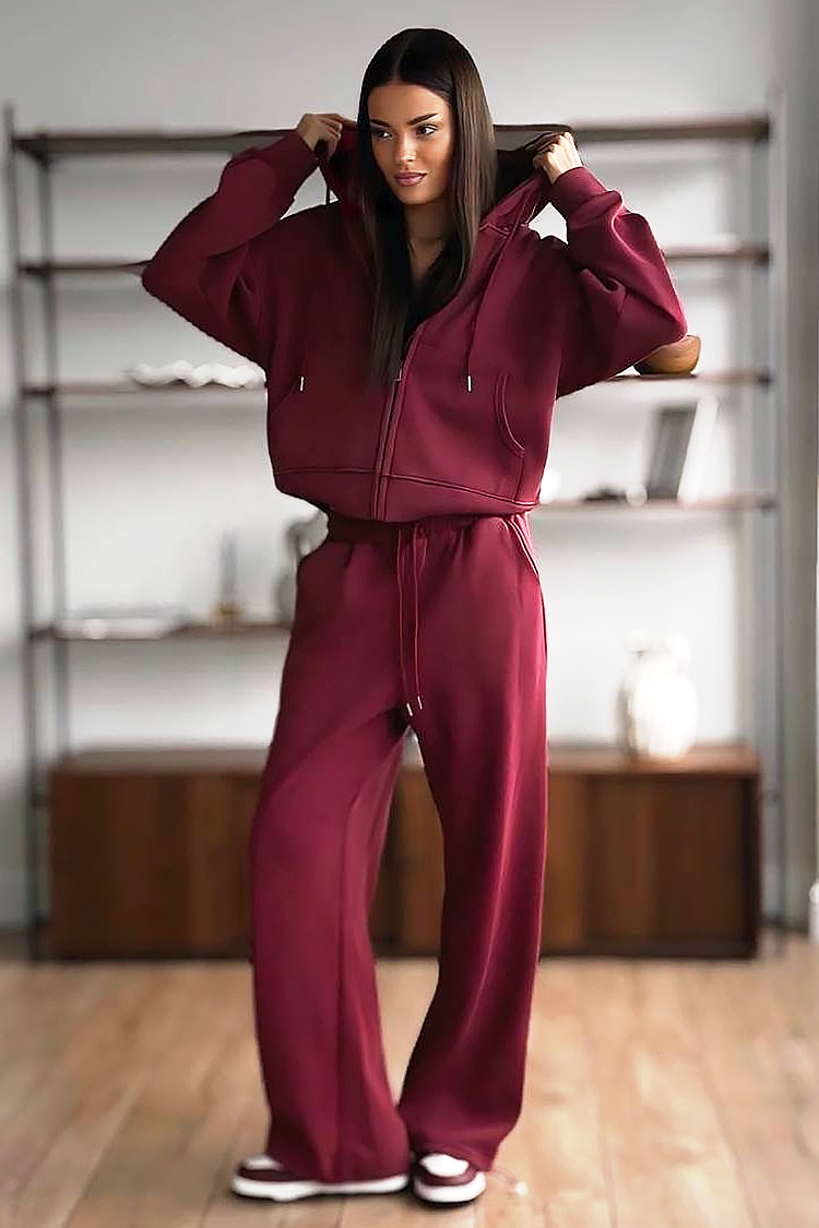 • Dvodelni ženski komplet za svakodnevni život sa jednobojnim dezenom.