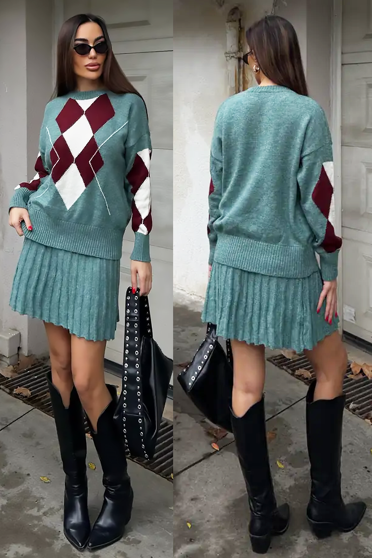 • Suknja je kratke dužine i visokog struka. Komplet se može kombinovati i sa ležernom i sa elegantnom obućom.