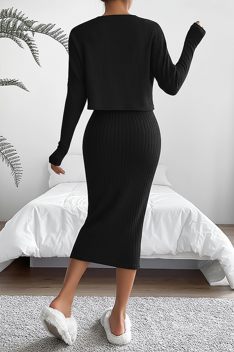 - Moderan dvodelni komplet u klasičnoj boji, pogodan za razne prilike.