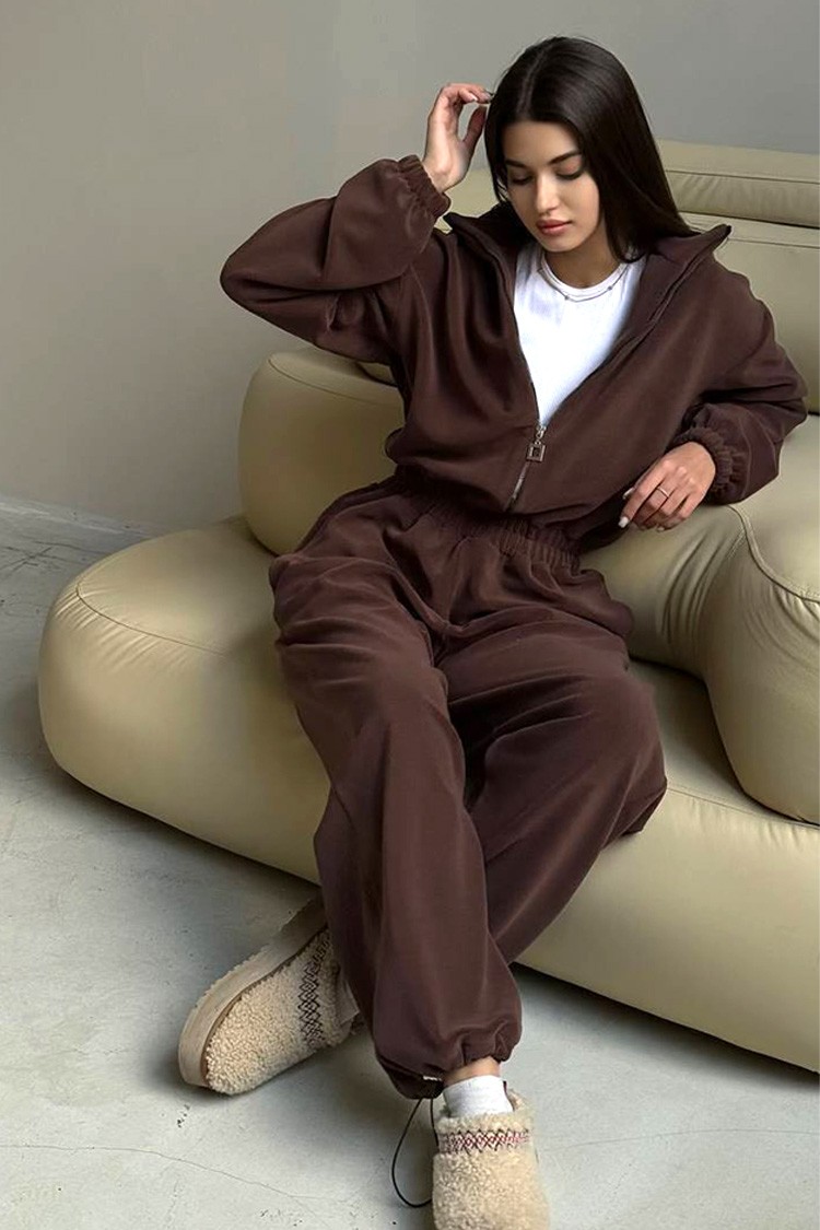 • Svakodnevni ženski komplet od dva dela sa jednobojnim dezenom.