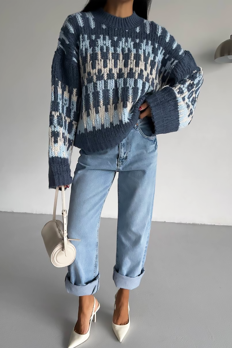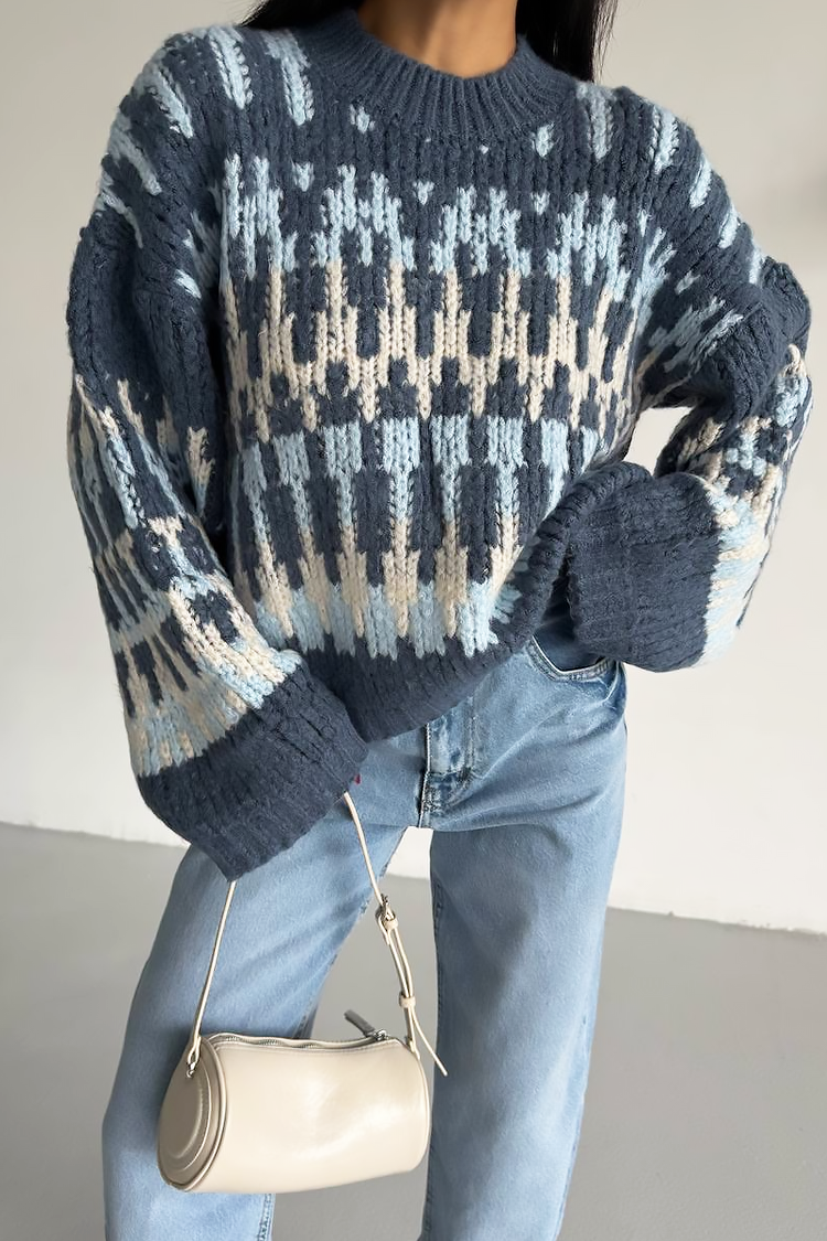 - Praktični džemper sa višebojnim dezenom, pogodan za svakodnevno nošenje.