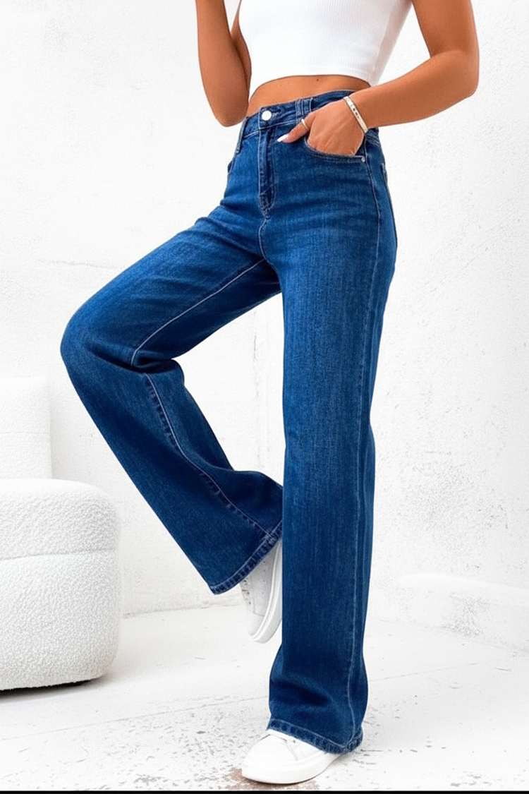 - Model ima visok struk, slobodan kroj i čist dizajn.