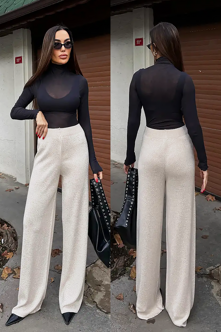 - Model ima visok i elastičan struk, ravan, slobodan kroj i sjajan efekat.