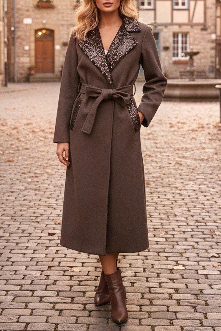 • Model ima klasičan dizajn, kaiš od iste tkanine i sjajne akcente oko kragne i džepova.