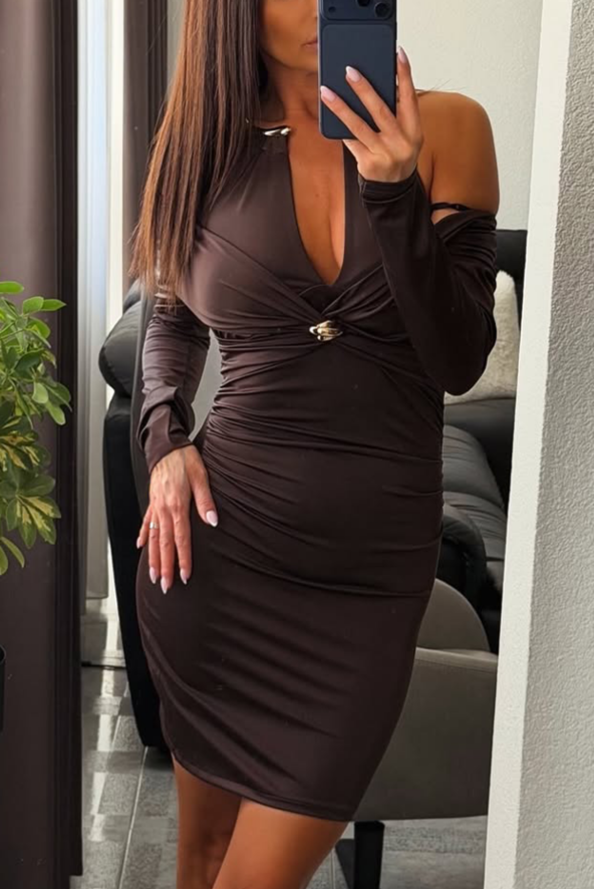 • Haljina ima efektan moderan kroj i blistavo seksi dekolte sa dugim rukavima.