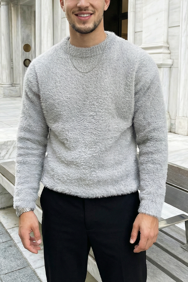 • Topli muški džemper univerzalnog karaktera u klasičnoj sivoj boji.