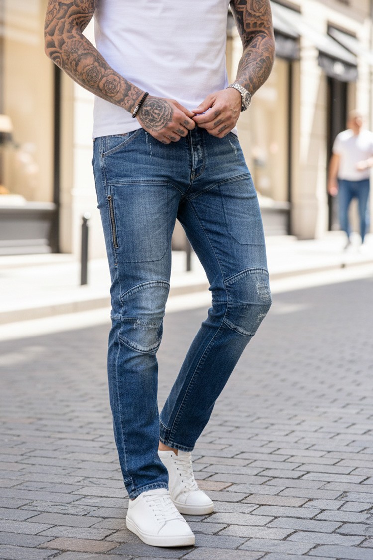 • Praktičan model farmerki sa ukrasnim rubljem i šavovima na nogavicama, pogodan za svakodnevni život.