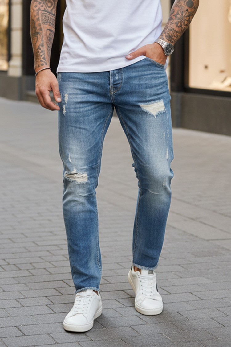 • Praktičan model farmerki sa ukrasnim pocepanjima i ogrebotinama na nogavicama, pogodan za svakodnevni život.