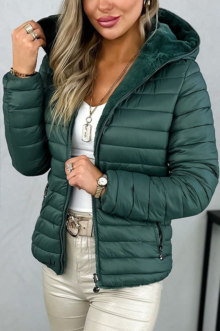 • Model ima udoban kroj, kapuljaču, džepove, perje cele dužine i zakopčava se rajsferšlusom.