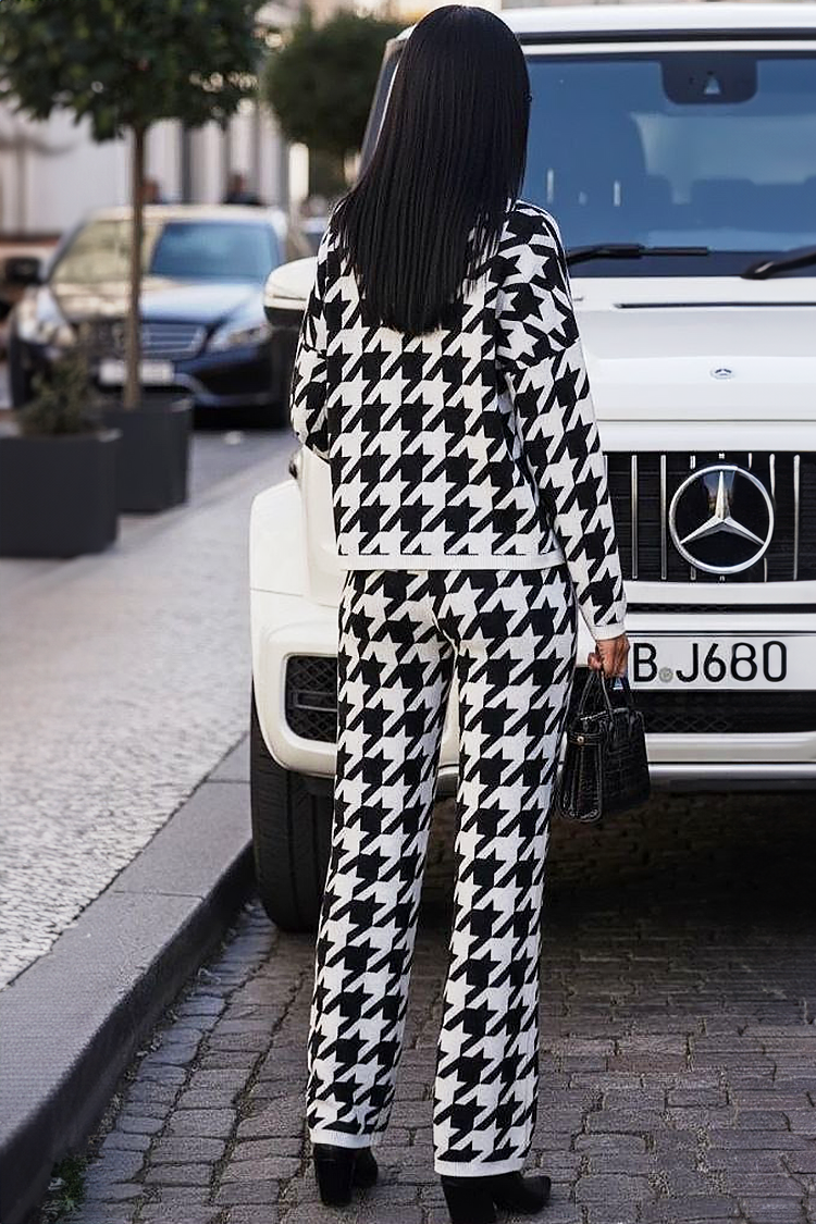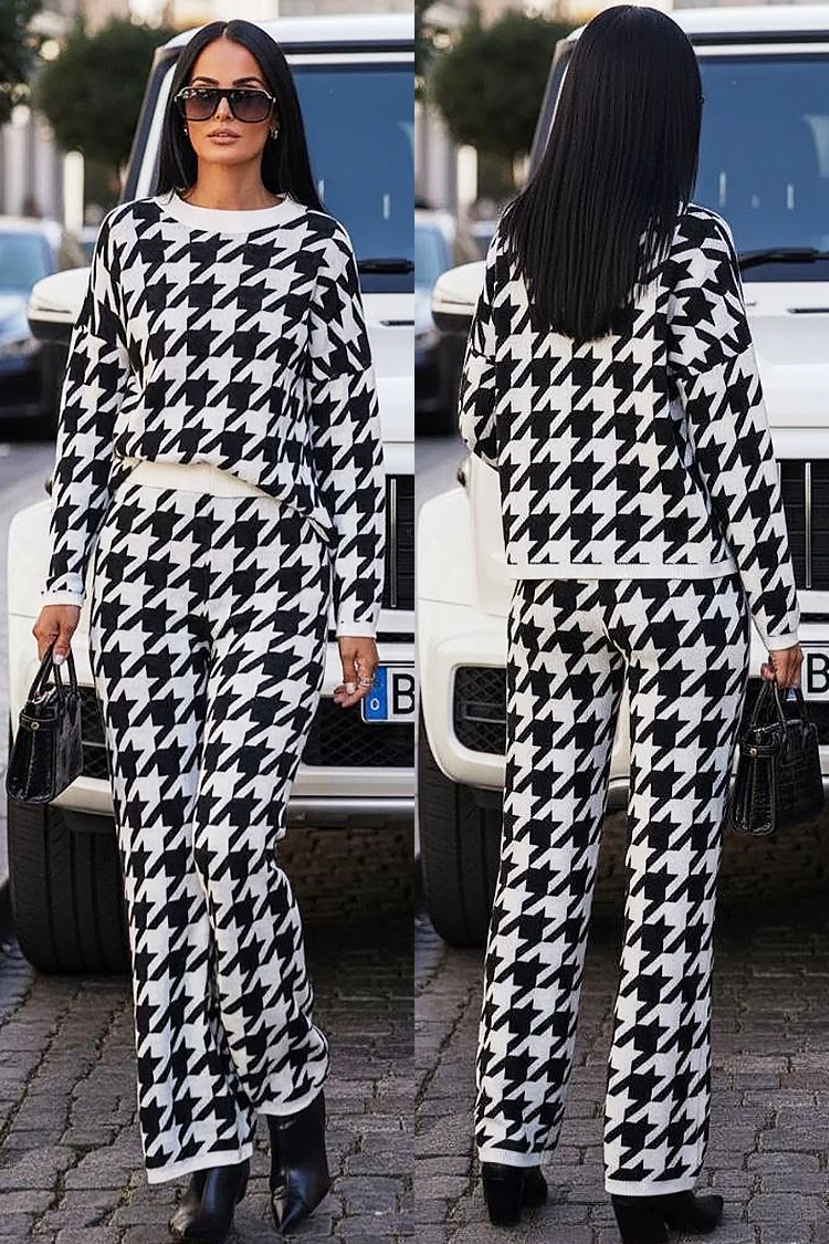 - Dvodelni svakodnevni komplet sa trendi dvobojnim dezenom - pantalone i bluza, pogodan za svakodnevni život.