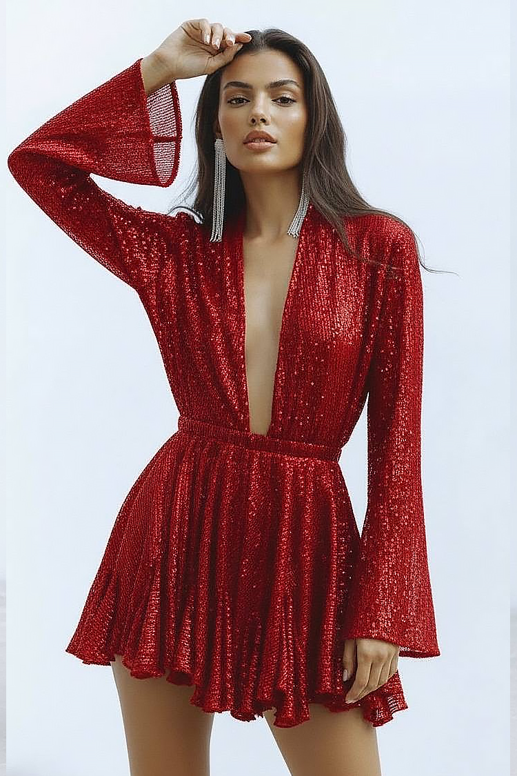 - Model ima sjajan kroj, dubok V-izrezan dekolte i duge rukave.