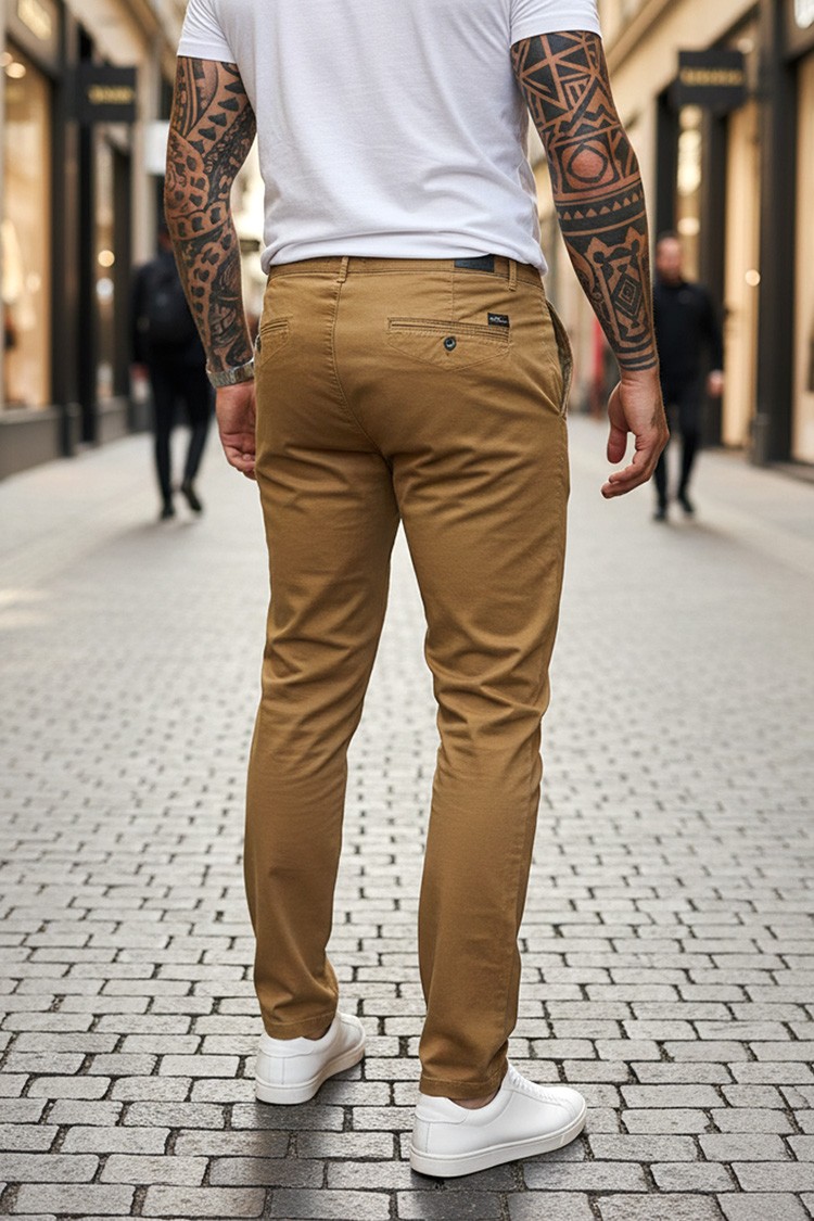 - Praktične muške kargo pantalone sa dekorativnim šavovima i džepovima sa obe strane, pogodne za svakodnevnu odeću.