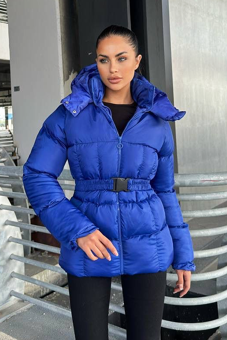 • Model ima prošiveni dizajn, kapuljaču, kaiš od iste tkanine i praktično zakopčavanje na dugmad.