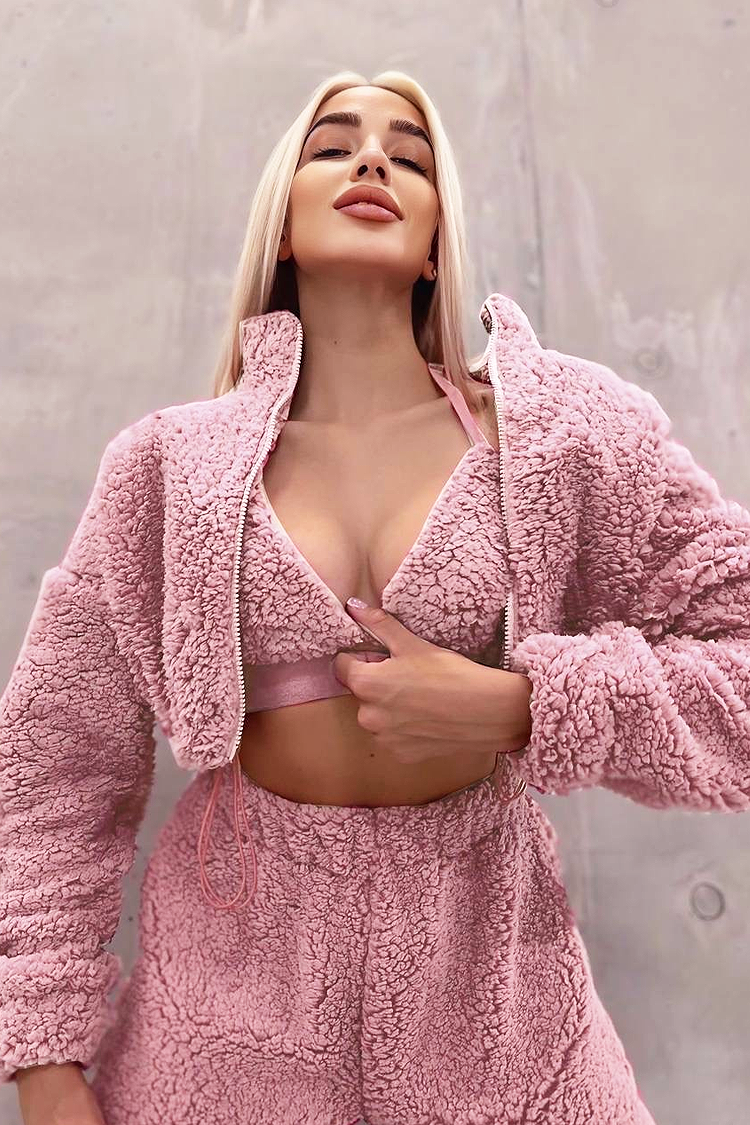 • Dukserica ima rajsferšlus i kapuljaču, pantalone imaju udoban kroj, a korset ima kratki kroj i izreze.