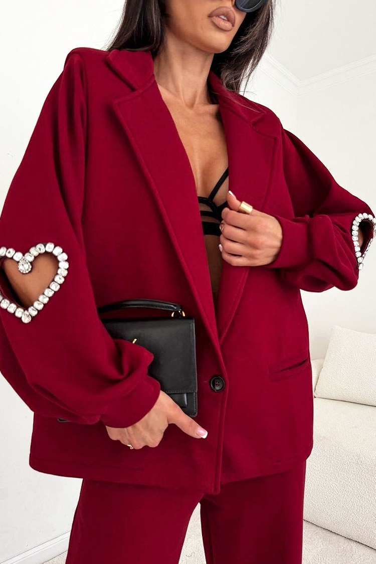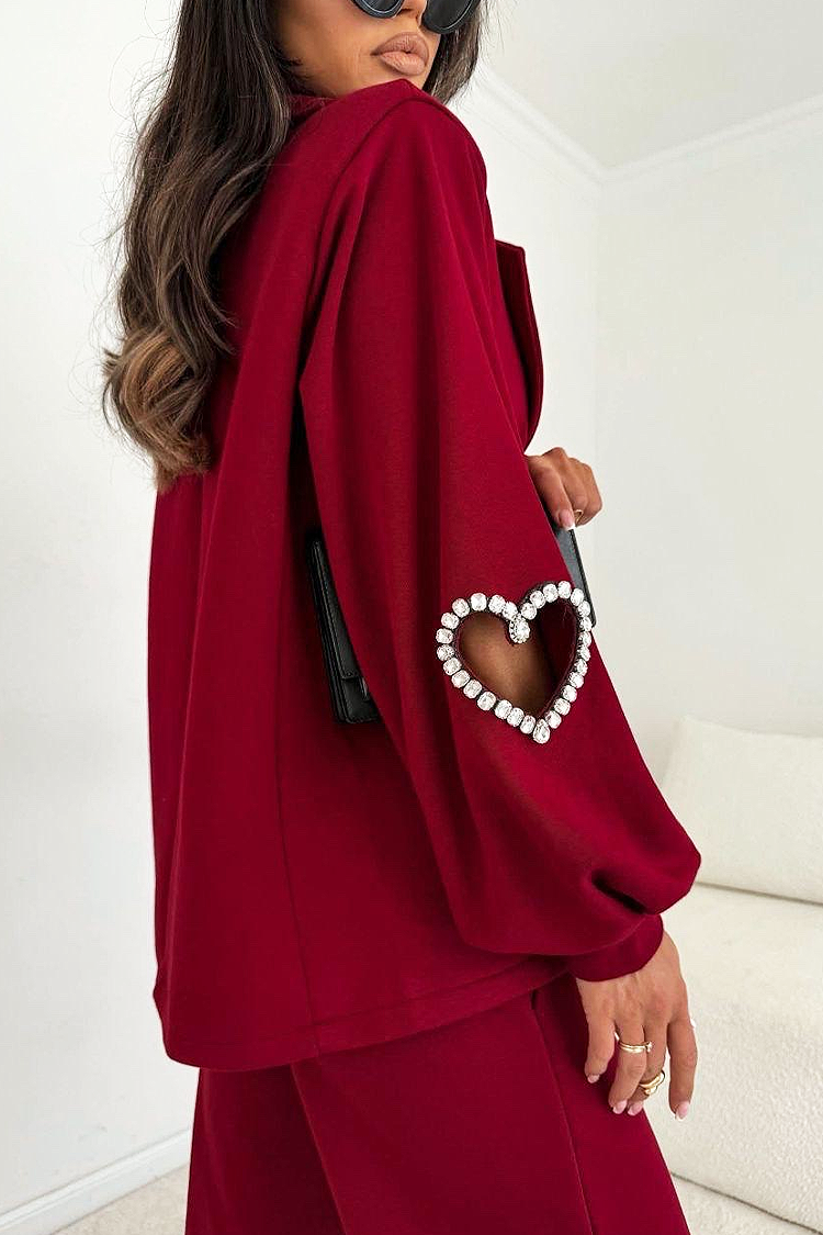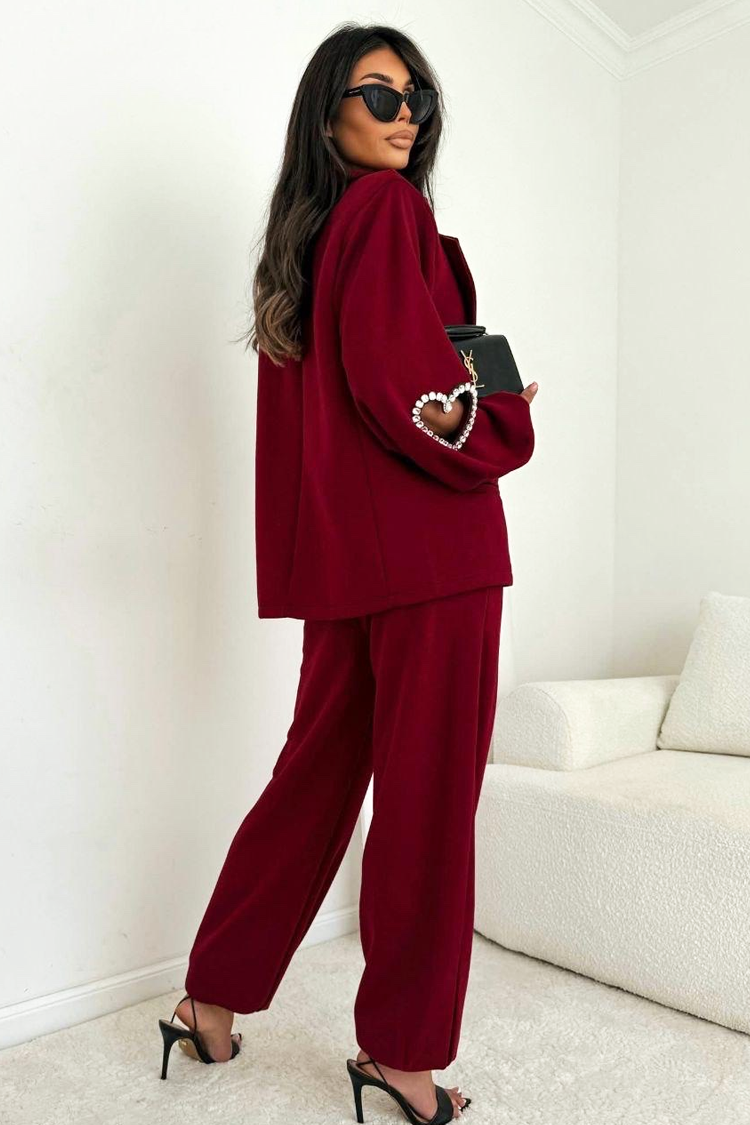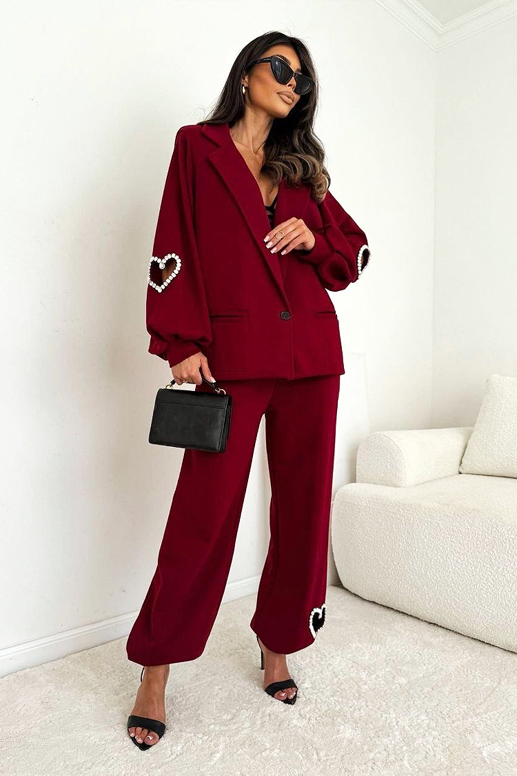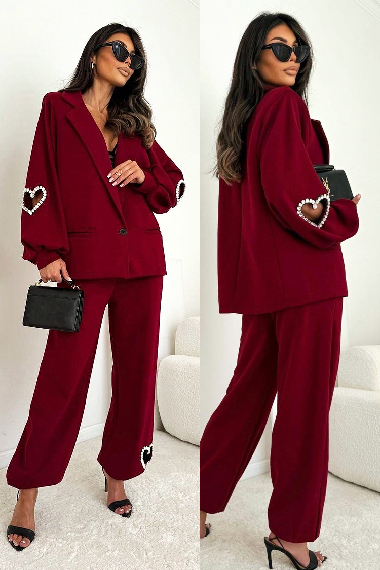 - Pantalone imaju visok struk i široke nogavice. Akcenat modela su efektni dekorativni elementi u obliku srca.
