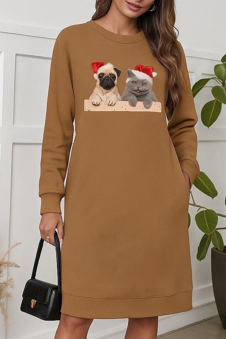 • Haljina ima udoban i širok kroj, duge rukave i novogodišnji print.