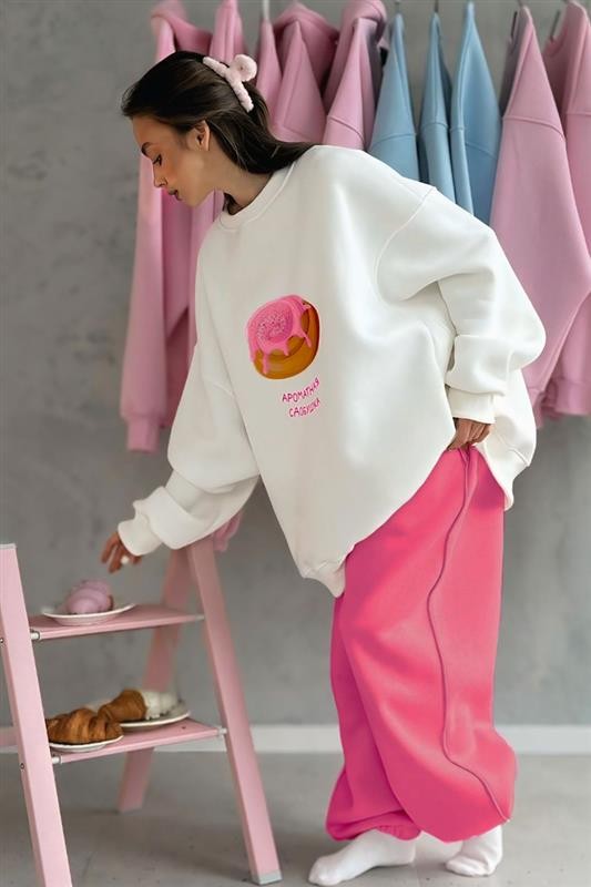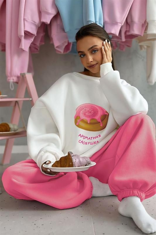 - Komplet se sastoji od bluze sa atraktivnim printom, u kombinaciji sa pantalonama slobodnog i udobnog kroja