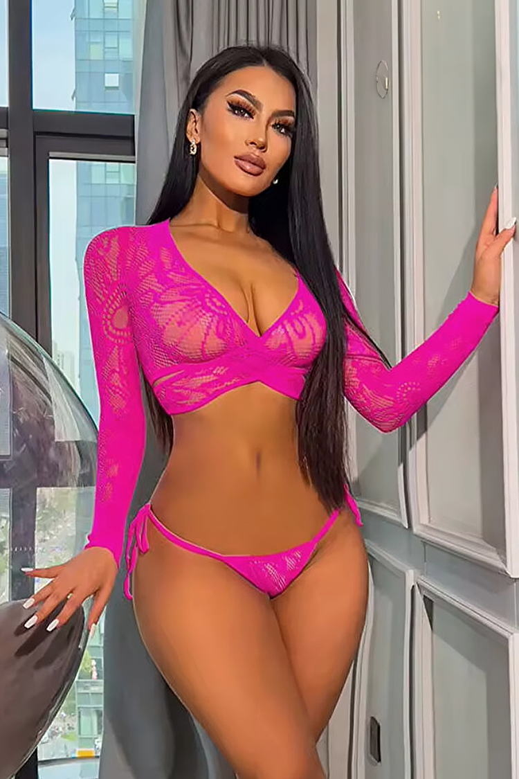 - Erotski dvodelni komplet donjeg veša - top dugih rukava i tange sa atraktivnim dizajnom.