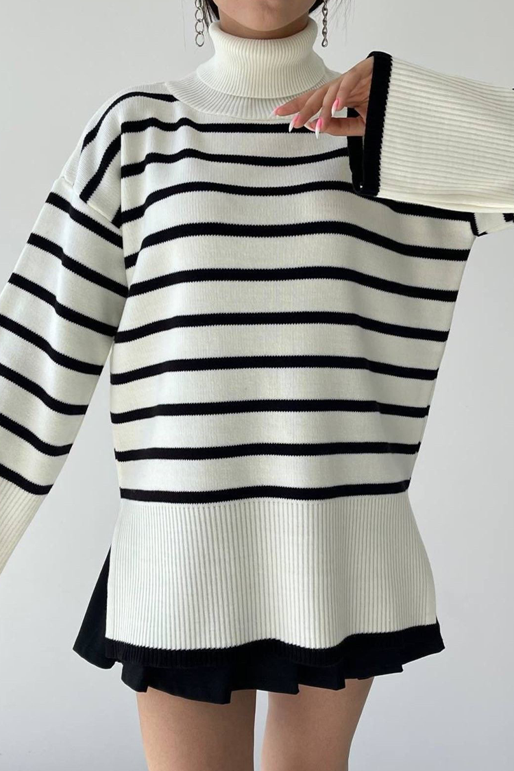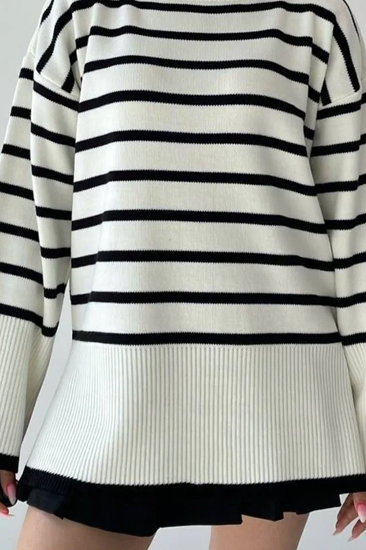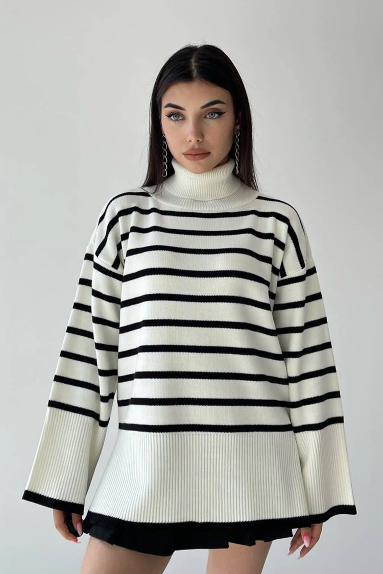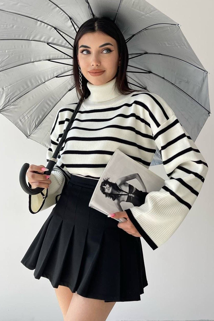 - Praktični džemper sa prugastim dezenom, pogodan za razne zimske izglede.